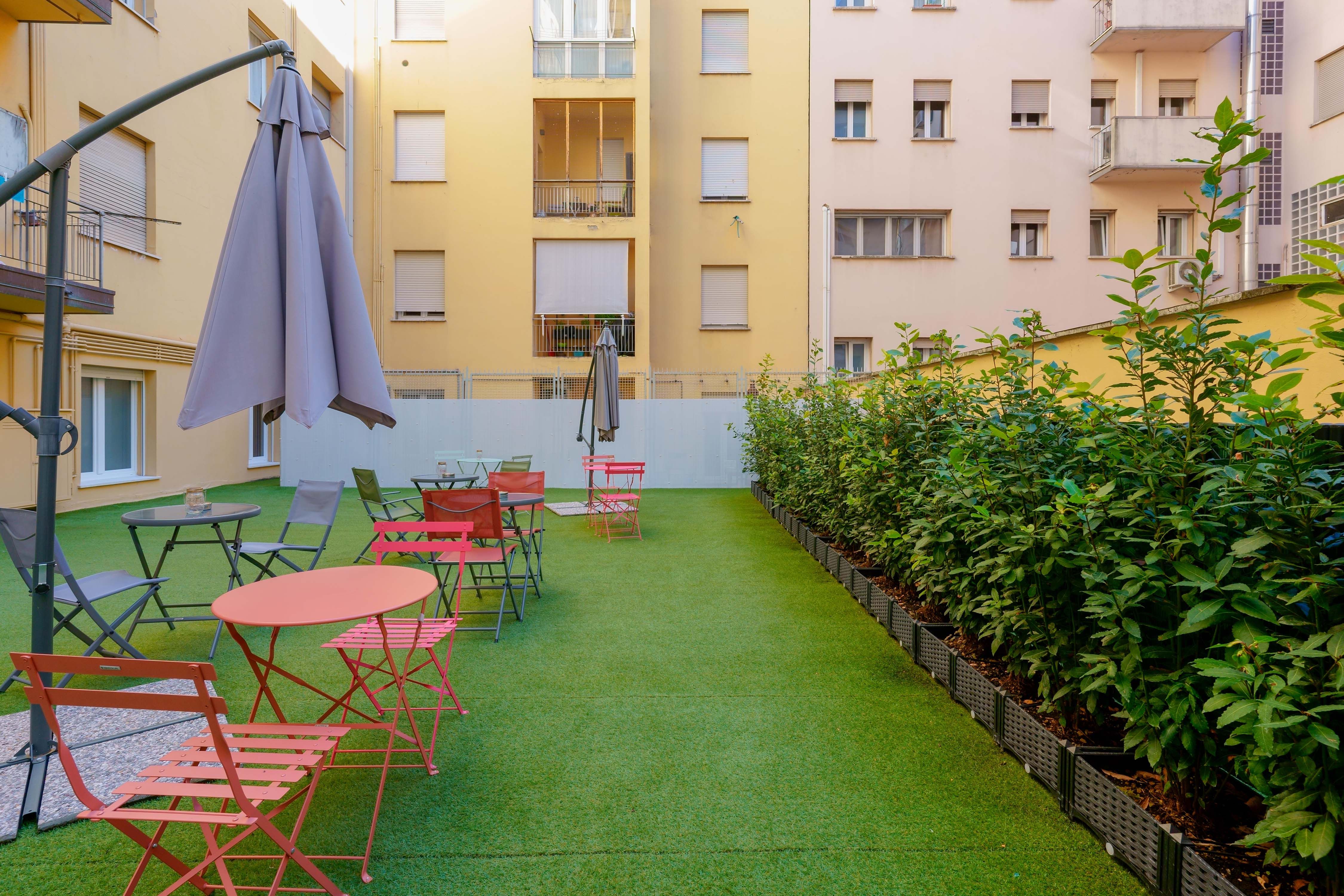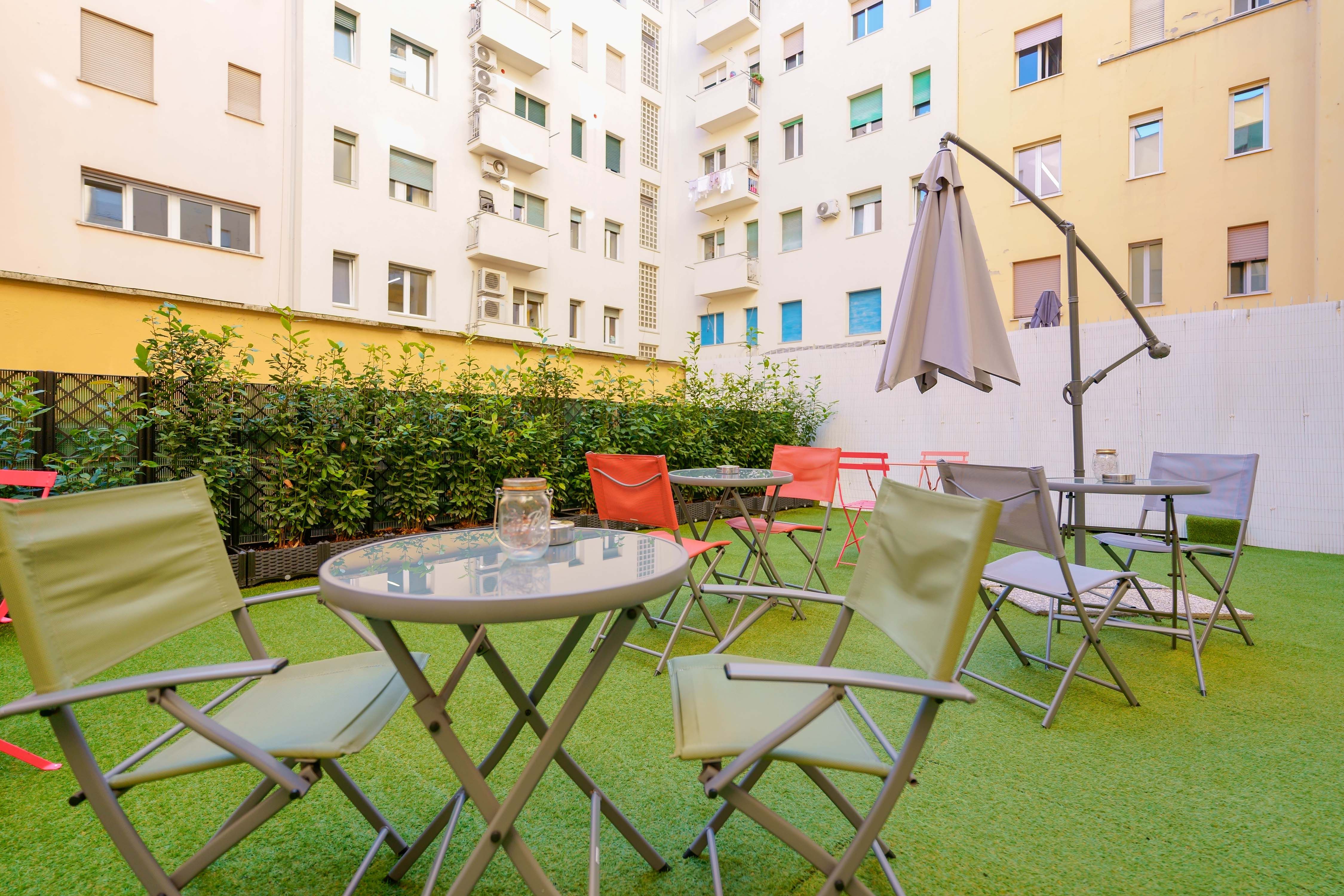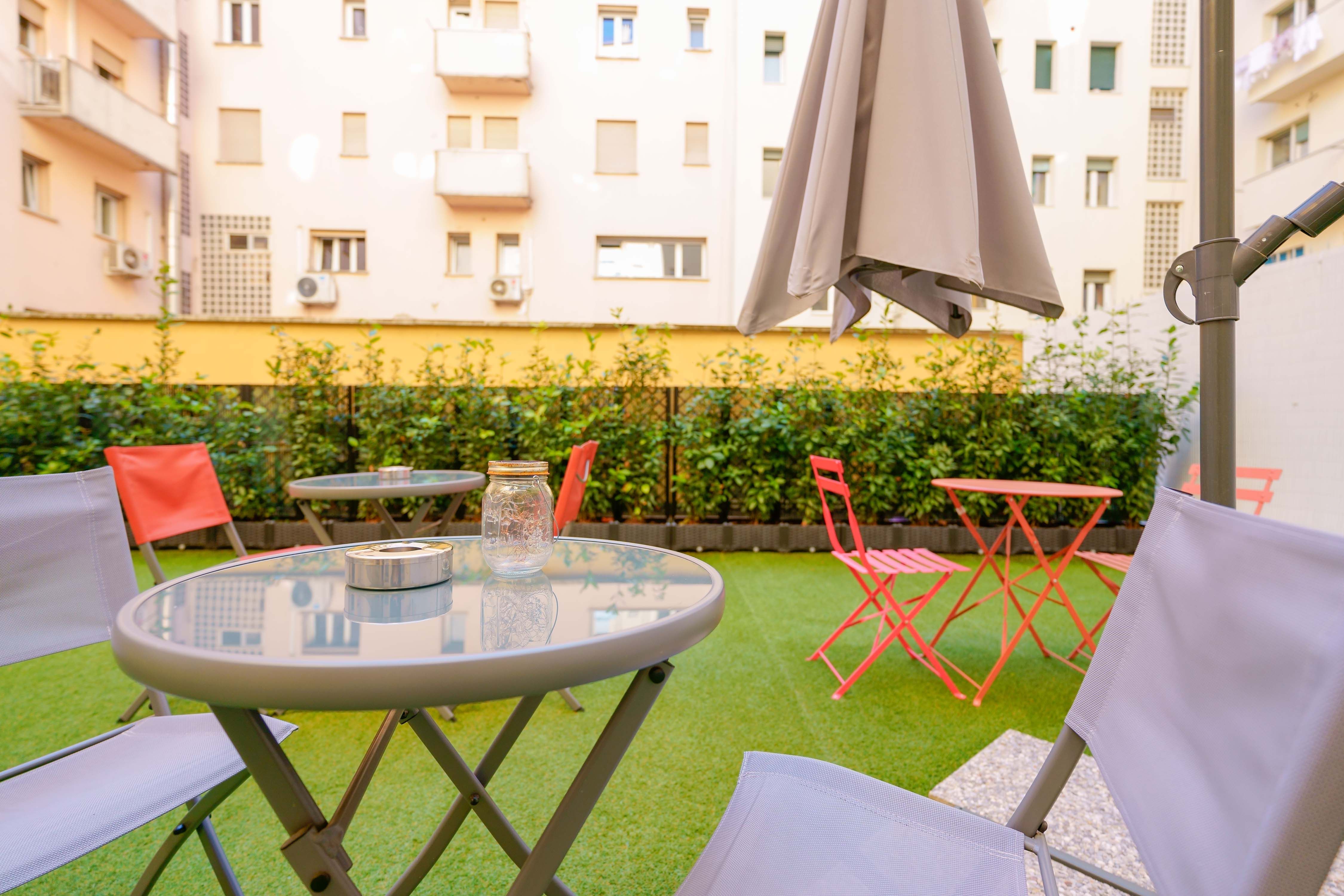 Die angrenzende Terrasse ist eine Oase der Ruhe, ideal, um einen Kaffee zu trinken, ein Buch zu lesen oder einfach nur an der frischen Luft zu entspannen. Die helle und einladende Umgebung lädt zu geselligen Momenten, Entspannung und Inspiration ein und macht jeden Aufenthalt zu etwas Besonderem.