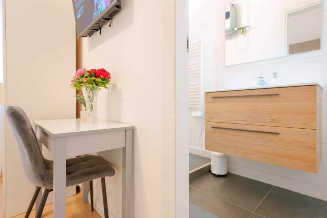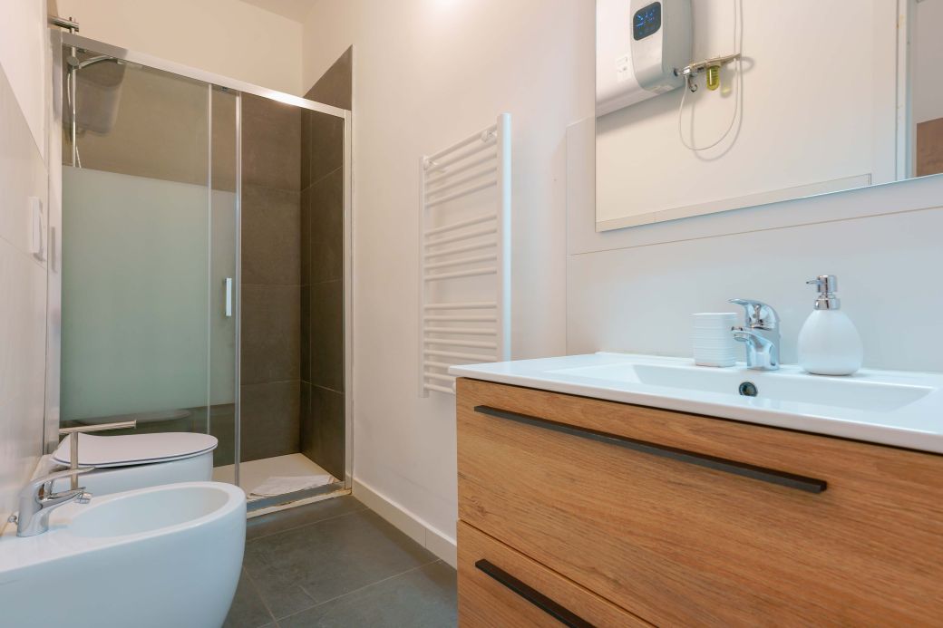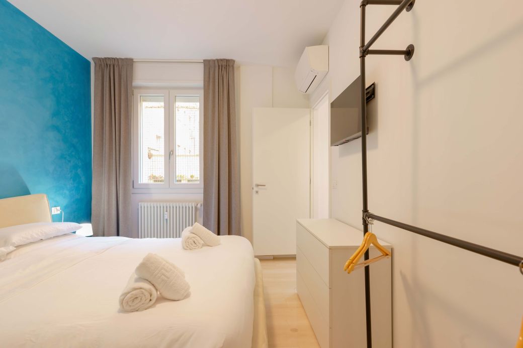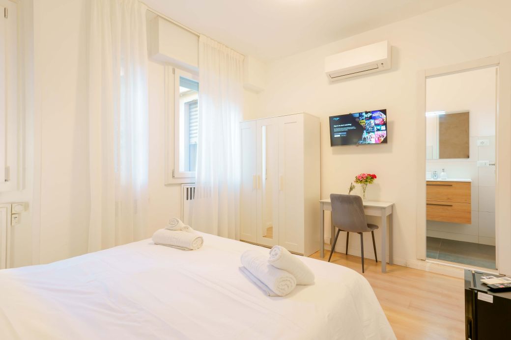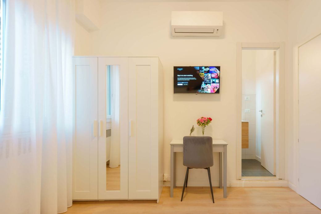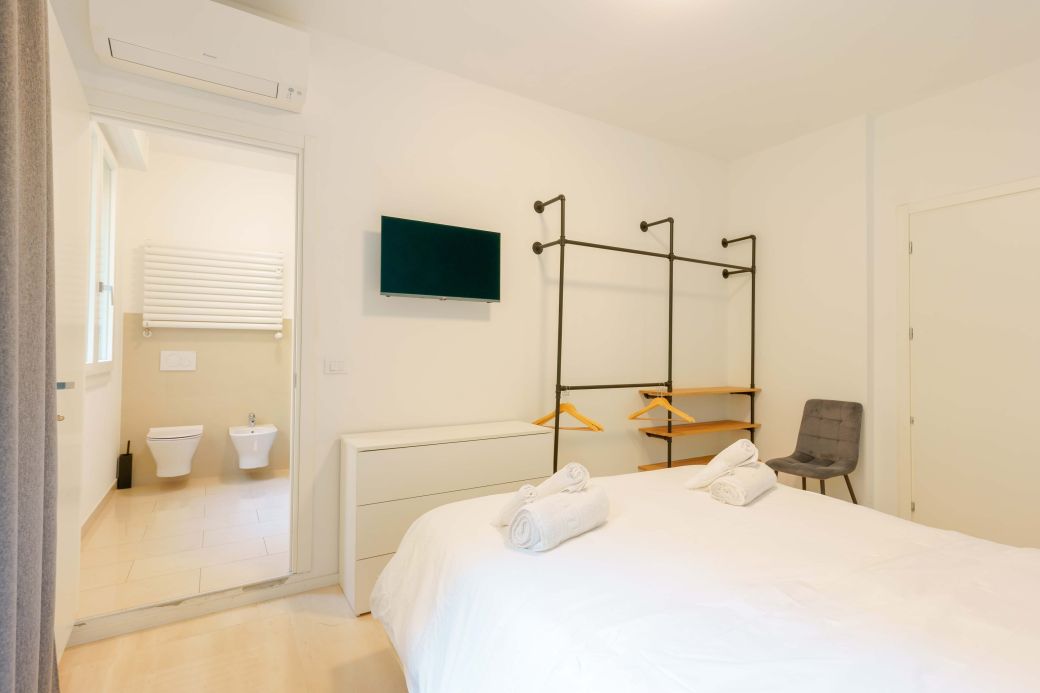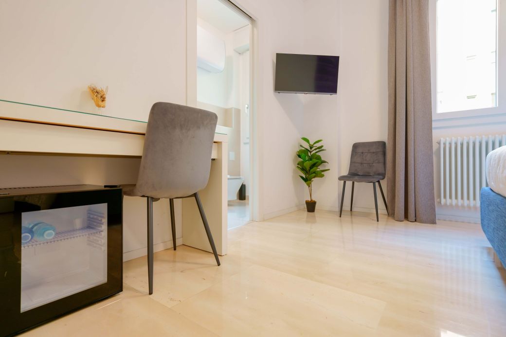 Die Liebe zum Detail und das raffinierte Design schaffen eine harmonische Atmosphäre, ideal für diejenigen, die Bologna mit Stil und Komfort erleben möchten. Die integrierte, diskrete und funktionale Technologie sorgt für einen Hauch von Praktikabilität, ohne die Eleganz des Zimmers zu beeinträchtigen. „Vivere” ist der perfekte Rückzugsort für alle, die Entspannung, Stil und ein modernes Erlebnis im Herzen der Stadt suchen.