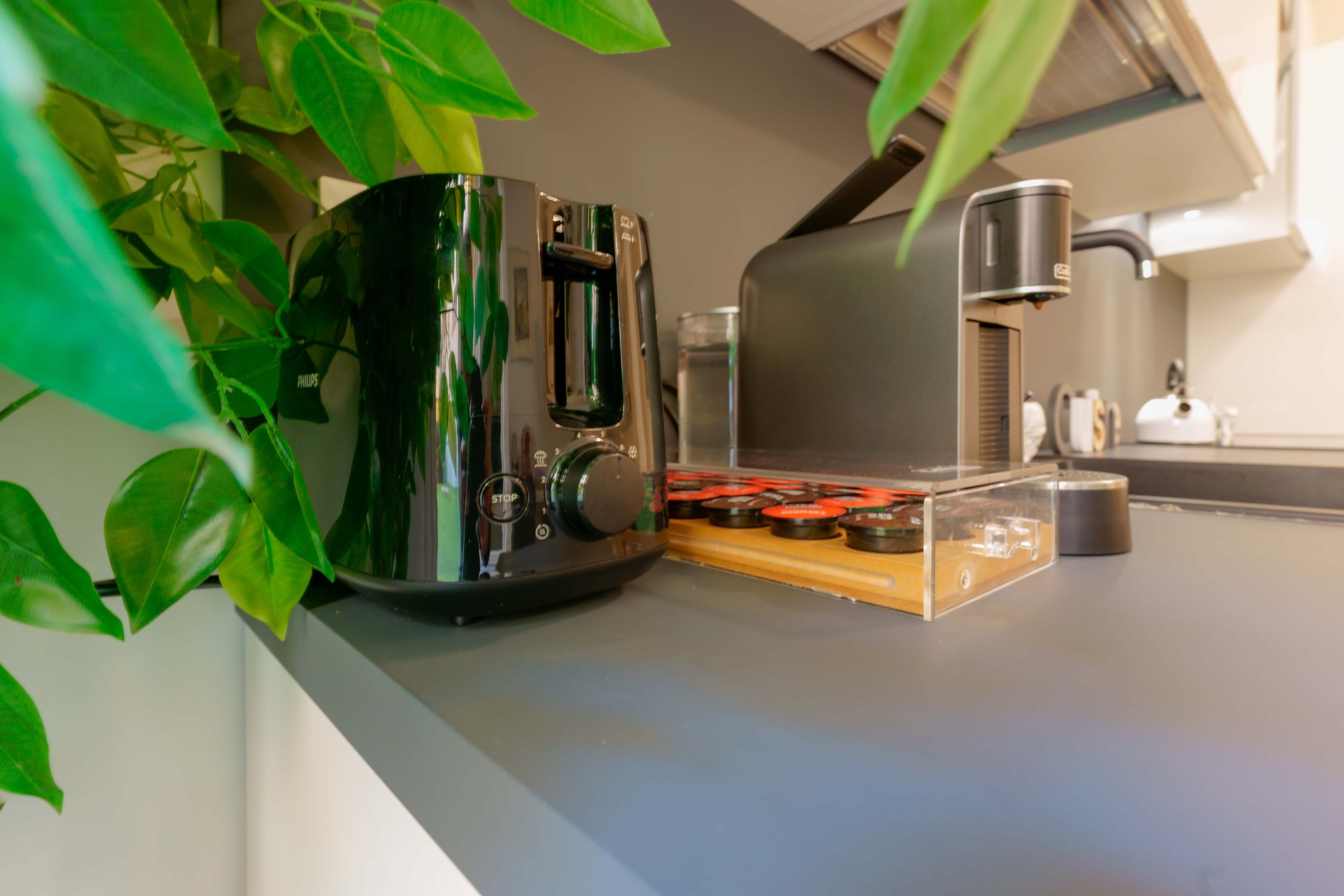 Unser Gemeinschaftsbereich ist darauf ausgelegt, Ihnen Momente des Genusses und der Entspannung zu bieten. Morgens finden Sie hier eine Auswahl an Frühstücksprodukten, die perfekt sind, um den Tag genussvoll zu beginnen. Mit der Kaffeemaschine können Sie Ihr Lieblingsgetränk ganz nach Belieben zubereiten, während Tee und Kräutertees das Angebot für ein angenehmes und erfrischendes Erwachen abrunden.