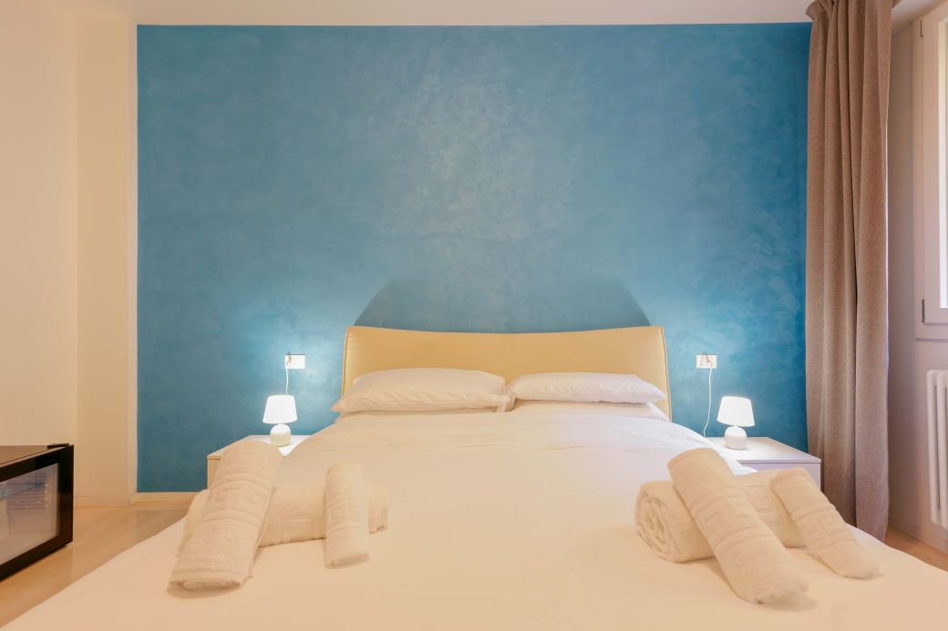 Ein Hauch von Modernität wird durch das fortschrittliche Hausautomationssystem garantiert, das den Aufenthalt noch komfortabler macht, ohne die Eleganz des Zimmers zu beeinträchtigen. „Alba Chiara” ist die perfekte Wahl für alle, die einen Aufenthalt im Zeichen der Ruhe, des Komforts und der Technologie im Herzen von Bologna wünschen.